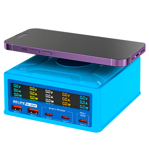 - Funciones principales: carga rápida PD (un puerto admite hasta 140 W), distribución inteligente de energía, pantalla LCD táctil a color con indicador de voltaje y corriente, base antideslizante para carga inalámbrica y control táctil para encendido/apagado de la pantalla