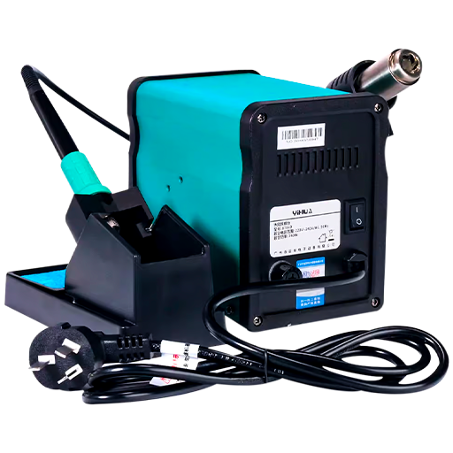 - Tipo: estación 2 en 1 con pistola de aire caliente y cautín