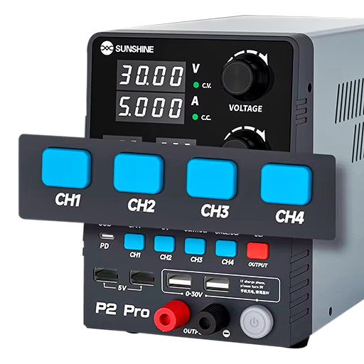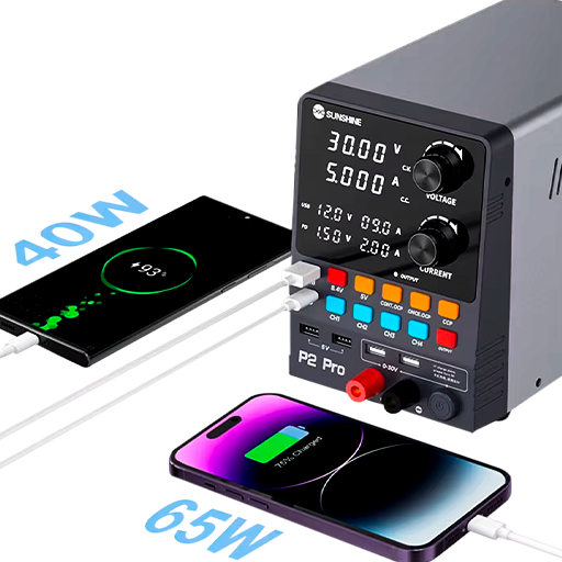 - Tipo: fuente de alimentación DC regulada inteligente con carga rápida USB